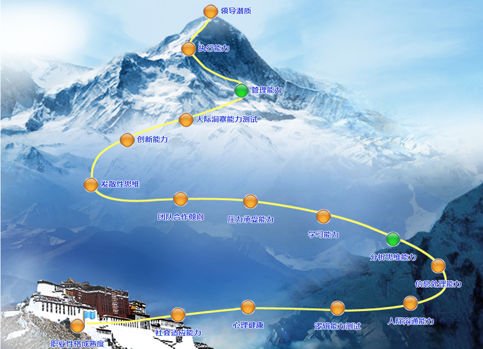 我們將培訓能力成長計劃模擬為珠峰攀登的過程,支持對16個能力方向進行訓練提升。培訓項目庫支持近50個管理游戲項目。線上測評和線下游戲相結合,幫助學生成長為優秀的培訓師。