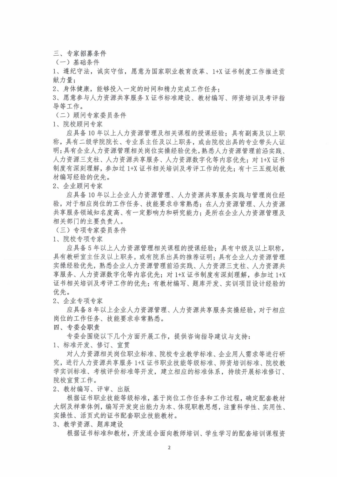 关于招募人力资源共享服务职业技能等级证书专家委员会委员的通知